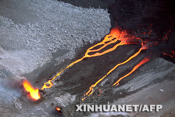 12月15日,法屬留尼汪島上的富爾奈斯火山噴發(fā)出熔巖。留尼汪島是法國四個海外省之一,島上的富爾奈斯火山海拔2631米,是世界上最活躍的活火山之一。新華社/法新