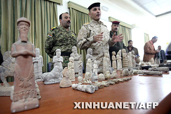 12月16日,伊拉克軍人在南部城市巴士拉展示找回的部分珍貴文物。自從2003年美國發(fā)動(dòng)伊拉克戰(zhàn)爭以來,伊拉克境內(nèi)約有1.5萬件文物失竊,許多文物流入國外的藝術(shù)品拍賣市場(chǎng)。伊政府目前已找回約8500多件失竊文物。 新華社/法新