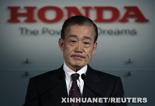 12月17日,本田汽車公司總裁福井威夫出席在日本東京總部舉行的年度新聞發(fā)布會(huì)。受全球經(jīng)濟(jì)不景氣以及近期日元升值等因素影響,本田當(dāng)天宣布第三次調(diào)低其年度營(yíng)業(yè)利潤(rùn)預(yù)期目標(biāo)至1800億日元(20億美元),較以前的預(yù)期減少60%多。新華社/路透