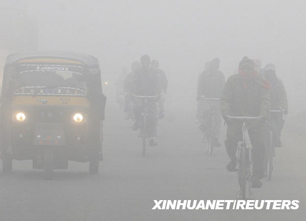 12月29日,在印度北部城市昌迪加爾,人們?cè)诖箪F中穿行。近日,印度德里、哈里亞納、旁遮普等地區(qū)的航空和鐵路等交通受到大霧影響,給人們出行帶了很多不便。新華社/路透