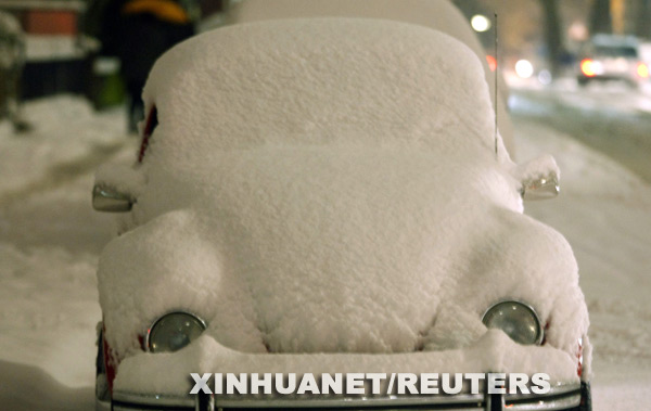 1月5日,在德國多特蒙德,一輛被積雪覆蓋的甲殼蟲汽車停放在路邊。新華社/路透