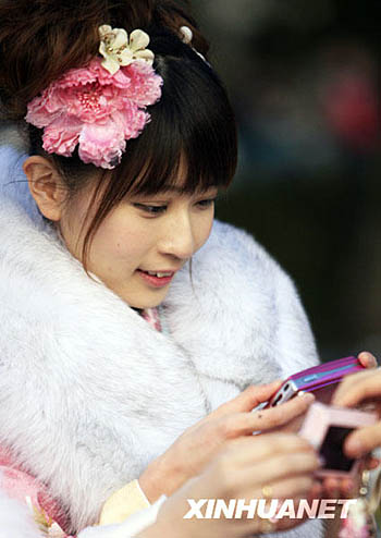 1月12日,一名年滿20歲的女孩身著和服在日本東京附近的迪斯尼樂園參加“成人節(jié)”慶祝活動。 當(dāng)天是日本2009年的“成人節(jié)”,全國133萬年滿20歲的男女青年參加各具特色的慶祝儀式,宣告自己成年。“成人節(jié)”也標(biāo)志著從這天起,他們擁有了成年人的權(quán)利和責(zé)任,擁有選舉權(quán),違法要負(fù)全責(zé)。