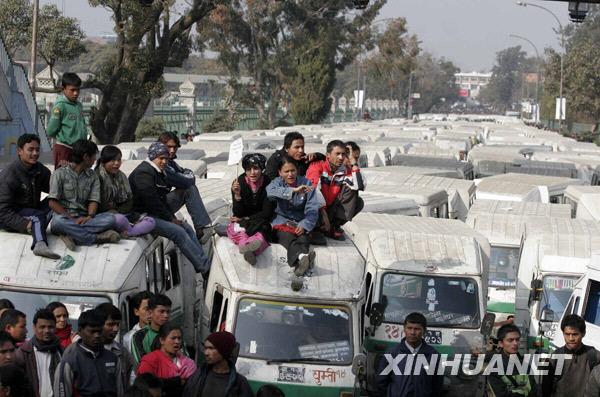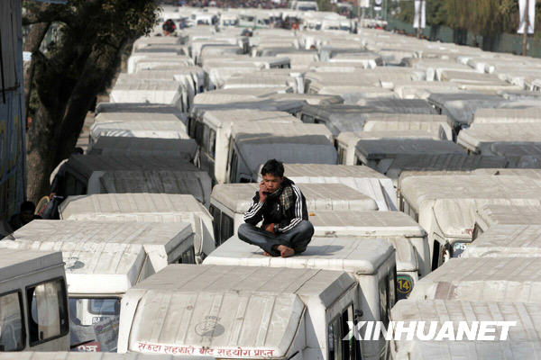 1月15日,在尼泊爾首都加德滿都,電動車司機(jī)坐在車頂上參加抗議活動。當(dāng)日,電動車司機(jī)們將他們駕駛的車輛停放在加德滿都的道路上,呼吁政府為他們提供穩(wěn)定的電力供應(yīng)。自本月11日起,尼泊爾的電力短缺問題日漸嚴(yán)重,商業(yè)和住宅用電每天中斷16個小時。