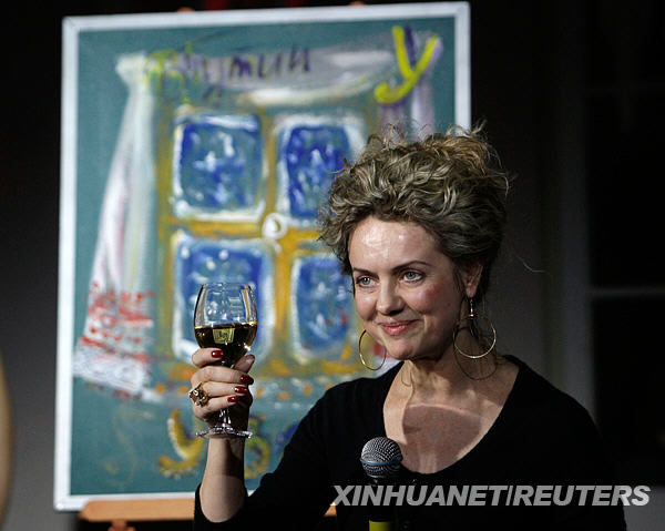 1月17日,在俄羅斯圣彼得堡,“我們的藝術(shù)家”美術(shù)館發(fā)言人納塔利婭舉杯慶祝該美術(shù)館拍得俄總理普京的畫作《刺繡》。俄羅斯總理普京的畫作《刺繡》當(dāng)日在圣彼得堡一場慈善拍賣會上以3700萬盧布(約合115萬美元)價格拍出。拍賣組織者說,普京利用20分鐘時間完成這幅畫作,專業(yè)畫家隨后對畫面稍加潤色。新華社/路透