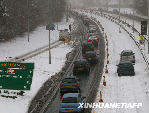 2月5日,在英國(guó)首都倫敦以北,大雪造成通往盧頓機(jī)場(chǎng)的一條公路交通堵塞。當(dāng)天,英國(guó)威爾士南部、英格蘭中部和西部、北愛(ài)爾蘭和倫敦以北地區(qū)再遭大雪襲擊。新華社/法新