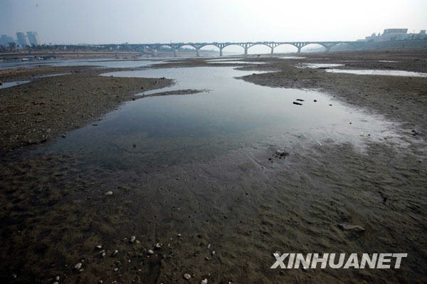湘江橘子洲大橋附近河床裸露(2月9日攝)。