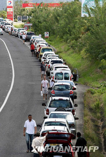 2月14日,在法屬馬提尼克島,等候加油的車輛排成長(zhǎng)隊(duì)。