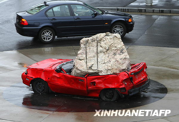 此前,這一“被大石塊砸中的汽車”雕塑在悉尼雙年展上吸引了眾多參觀者的關(guān)注。新華社/法新