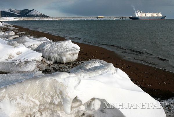 2月16日,一艘液化天然氣運輸船?吭诙砹_斯薩哈林島上的液化天然氣站附近。 俄羅斯定于2月18日啟用它在薩哈林島上的液化天然氣站,以向日本、韓國和美國提供天然氣,其中大約65%的產(chǎn)量將供應(yīng)日本。根據(jù)薩哈林能源公司統(tǒng)計,它負(fù)責(zé)開發(fā)的這座天然氣站預(yù)計將年產(chǎn)980萬噸液化天然氣,大致相當(dāng)于世界總供應(yīng)量的4%。新華社/法新