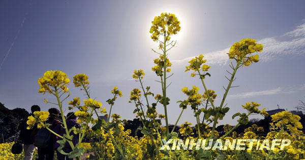 2月22日,在日本東京的一個(gè)公園里,一朵朵油菜花迎風(fēng)盛開。新華社/法新