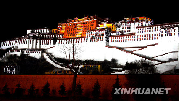 2月23日晚,禮花在布達(dá)拉宮上空綻放。