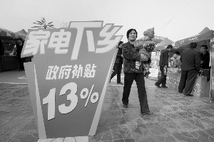 農(nóng)民在家電下鄉(xiāng)中購買彩電、冰箱等產(chǎn)品,將得到銷售價(jià)格13%的財(cái)政直補(bǔ)。圖為甘肅省皋蘭縣“家電下鄉(xiāng)”活動(dòng)現(xiàn)場 新華社