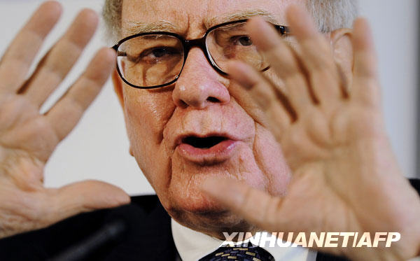 這是2008年5月19日在德國法蘭克福拍攝的巴菲特出席新聞發(fā)布會的資料照片。2月28日,美國億萬富翁沃倫·巴菲特旗下的伯克希爾·哈撒韋公司公布年報說,去年第四季度投資收益驟降96%,全年表現(xiàn)為巴菲特1965年接手公司以來最糟糕紀錄。新華社/法新
