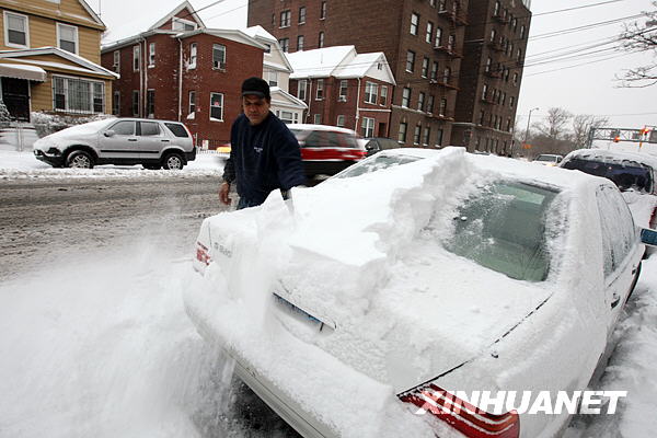 3月2日,美國紐約的一名市民清掃自家車上的積雪。