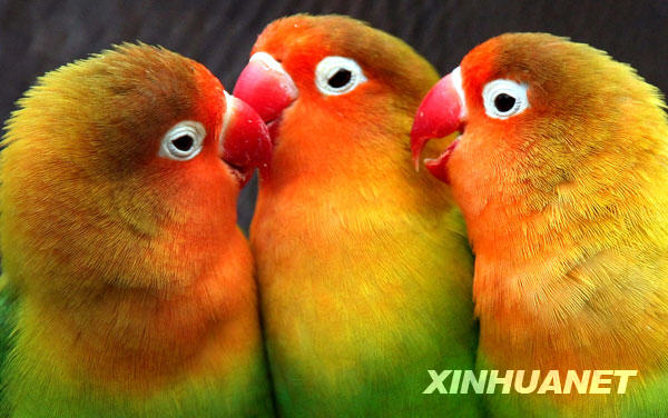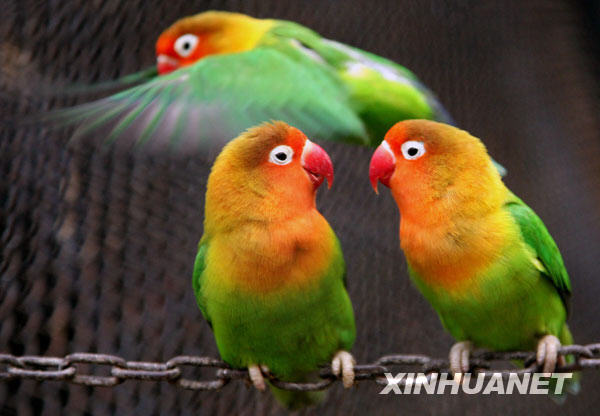 3月1日,三只鸚鵡在南京紅山森林動(dòng)物園內(nèi)耳鬢廝磨。