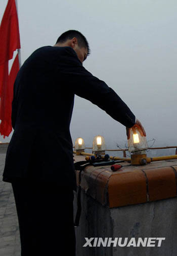 3月4日,工作人員在人民大會堂樓頂檢修夜景照明燈。3月5日,十一屆全國人大二次會議將在北京人民大會堂開幕,當(dāng)晚,北京市將按照重大節(jié)日要求開放夜景照明設(shè)施。