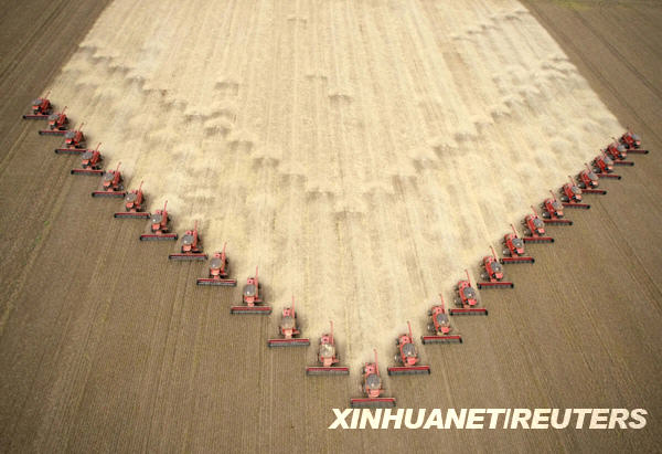 3月5日,工人駕駛收割機(jī)在巴西馬托格羅索州的一個(gè)農(nóng)場(chǎng)收割大豆。2008/2009年度巴西大豆產(chǎn)量估計(jì)約為5720萬(wàn)噸。新華社/路透 | |