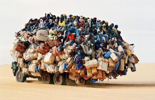 英國《每日郵報》網(wǎng)站3月7日刊登了一張令人瞠目結(jié)舌的照片。約百名左右的非洲外出打工者擠在堆滿行李的貨車頂部,冒著撒哈拉沙漠的高溫,開始了返鄉(xiāng)的旅途。