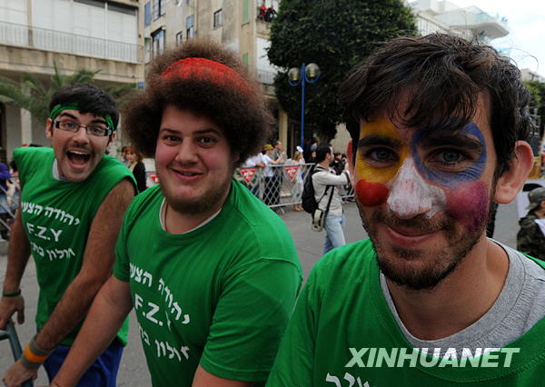 3月10日,在以色列中部小鎮(zhèn)霍隆,三名年輕人參加普林節(jié)游行。今年的3月10日至11日是猶太教傳統(tǒng)節(jié)日普林節(jié)。在普林節(jié)期間,猶太人身著夸張的服飾、戴著假面具參加狂歡游行,因此普林節(jié)又被稱為以色列的狂歡節(jié)。