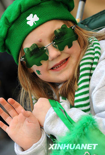 3月17日,在美國(guó)紐約曼哈頓,一名小女孩參加圣帕特里克節(jié)游行。當(dāng)日,紐約舉行盛大游行,慶祝圣帕特里克節(jié)。圣帕特里克節(jié)是愛爾蘭人紀(jì)念愛爾蘭守護(hù)神圣帕特里克的節(jié)日,至今已有1500多年歷史,這一節(jié)慶傳統(tǒng)被愛爾蘭移民帶入美國(guó)。