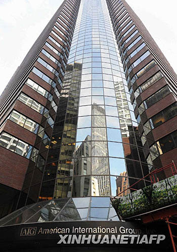 圖為2008年9月17日在美國(guó)紐約曼哈頓拍攝的美國(guó)國(guó)際集團(tuán)(AIG)辦公樓的資料照片。新華社/法新