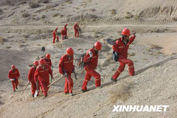3月29日,中國石油東方物探公司塔里木經(jīng)理部的工人在進(jìn)行物探作業(yè)。新華社記者:邢廣利攝