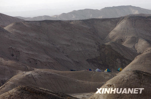 中國石油東方物探公司塔里木經(jīng)理部的工人住宿的帳篷(3月29日攝)。新華社記者:邢廣利攝