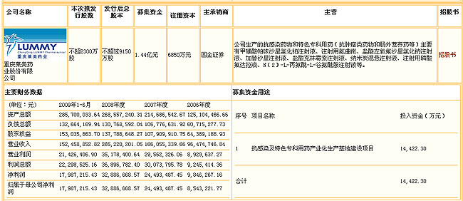 萊美藥業(yè)以研發(fā)、生產(chǎn)和銷售新藥為主,產(chǎn)品主要涵蓋抗感染類和特色?朴盟巸纱笙盗校饕a(chǎn)品有喹諾酮類抗感染藥、抗腫瘤藥、腸外營養(yǎng)藥等。 招股說明書顯示,萊美藥業(yè)2009年上半年營業(yè)收入為1.52億元,凈利潤為1798.72萬元,基本每股收益0.25元,歸屬于發(fā)行人股東的每股凈資產(chǎn)2.23元,全面攤薄凈資產(chǎn)收益率11.28%。資產(chǎn)負債率(合并報表口徑)46.43%。 次募集資金扣除發(fā)行費用后,公司擬將募集資金投向抗感染及特色?朴盟幃a(chǎn)業(yè)化生產(chǎn)基地建設(shè)項目,該項目總投資額為14,422.30萬元。如果本次發(fā)行實際募集資金量不能滿足上述項目資金需求,不足部分由公司自籌解決;如本次發(fā)行實際募集資金量超過項目的資金需求量,公司擬將富余的募集資金主要用于補充募投項目建設(shè)和生產(chǎn)所需要的流動資金。 如募集資金在補充完上述募集資金投資項目的流動資金后仍有余額,則將用于補充公司經(jīng)營所需的流動資金、償還銀行貸款。 目前,邱宇是萊美藥業(yè)的控股股東、實際控制人。本次發(fā)行前,邱宇先生持有公司2,063.90萬股股份,占公司總股本的30.13%。自然人股東43人,其中31人為中高層核心管理人員和業(yè)務(wù)骨干。 截至本招股書簽署日,邱宇除持有萊美藥業(yè)30.13%的股權(quán)外,還持有藥友科技32.67%的股權(quán)。