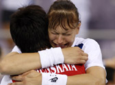 “姐妹花”相擁慶勝利