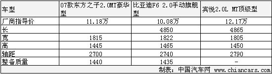 從上面的表中我們可以看出,賓悅的價(jià)格比F6整整多出了2萬(wàn)多元,很明顯,沒有什么理由讓消費(fèi)者去多掏那2萬(wàn)元。從車身尺寸對(duì)比可以看處,賓悅是三者中擁有最長(zhǎng)車身的車型,而身高和寬度上比亞迪更勝一籌。軸距上的優(yōu)勢(shì)使賓悅的內(nèi)部乘坐空間相對(duì)其他兩款車型會(huì)好點(diǎn),穩(wěn)定性好了,轉(zhuǎn)向靈活性就會(huì)相應(yīng)的差點(diǎn)。質(zhì)量的多少賓悅雖然沒有公布出來,但是從各數(shù)據(jù)可以判斷出,賓悅的整備質(zhì)量應(yīng)該是三款車型中是最重的,無(wú)疑也是對(duì)油耗影響最大的。