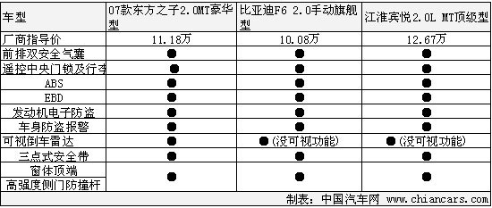 隨著比亞迪F6和江淮賓悅的上市,自主品牌中級(jí)車市場(chǎng)的競(jìng)爭(zhēng)趨于白熱化,自主品牌中的同級(jí)別車型屬東方之子推出的時(shí)間最早,人脈和服務(wù)水平還有行情的把握都已占據(jù)了一些優(yōu)勢(shì),但是后進(jìn)之秀比亞迪F6憑借時(shí)尚大方的外觀和誘人的價(jià)格,吸引了大量的眼球和準(zhǔn)車主的購(gòu)買欲望。截止到現(xiàn)在每個(gè)月平均不到1000臺(tái)的銷售量,江淮賓悅的市場(chǎng)定位和價(jià)格策略,在筆者看來確實(shí)是很失敗。下面就三款車型的各主要方面,筆者做了一些對(duì)比,希望對(duì)您購(gòu)車有所幫助!