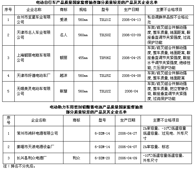 此次共抽查了天津、江蘇、浙江、上海、山東、廣東、四川等七個(gè)省、市部分企業(yè)生產(chǎn)的產(chǎn)品。抽查結(jié)果表明,大型企業(yè)的產(chǎn)品質(zhì)量繼續(xù)保持較高水平,產(chǎn)品抽樣合格率均超過(guò)90%,而小型企業(yè)的產(chǎn)品質(zhì)量問(wèn)題較多,整車抽樣合格率為65.7%,車用蓄電池抽樣合格率僅為58%。