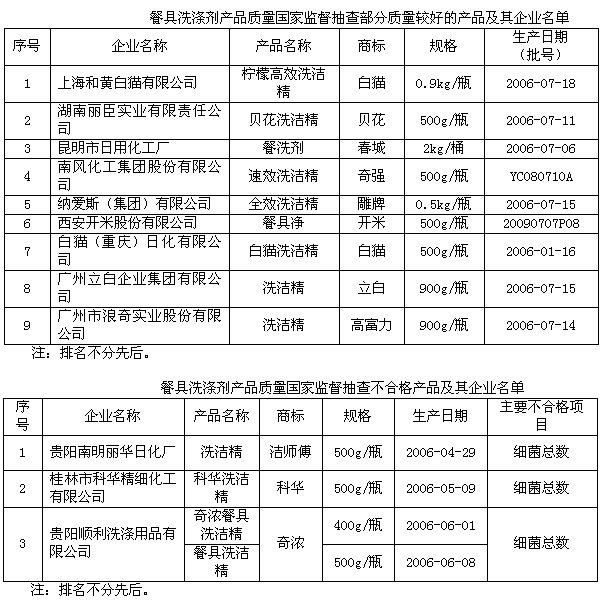 據(jù)國家質檢總局網(wǎng)站,國家質檢總局日前對全國51家企業(yè)的76種餐具洗滌產(chǎn)品進行抽查,結果顯示四種產(chǎn)品質量存有問題,產(chǎn)品抽查合格率為94.7%。