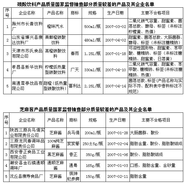 日前,國家質檢總局對黃酒、碳酸飲料、芝麻醬等產品進行了國家質量監(jiān)督抽查,抽檢合格率分別為92.3%、78.6%、和87.5%。 黃酒行業(yè)抽查中發(fā)現(xiàn)的主要問題有,第一,菌落總數(shù)超標。國家規(guī)定黃酒產品的菌落總數(shù)應≤50cfu/ml,抽查中有個別產品菌落總數(shù)為77cfu/ml;第二,個別產品非糖固形物不合格,主要是因為在原酒中摻水;第三,個別產品氨基酸態(tài)氮及總酸不合格,這會影響黃酒的口感。 碳酸飲料行業(yè)抽查中發(fā)現(xiàn)的主要質量問題是:部分產品微生物指標、甜味劑、防腐劑含量超標;部分產品二氧化碳氣容量不合格等。 芝麻醬產品抽查中發(fā)現(xiàn)的主要質量問題是:個別產品大腸菌群不合格。大腸菌群是直接涉及人體健康的重要衛(wèi)生指標。國家標準規(guī)定芝麻醬產品的大腸菌群應≤90個/100g。抽查中有個別產品大腸菌群為230個/100g。個別產品脂肪酸組成、脂肪含量不合格。