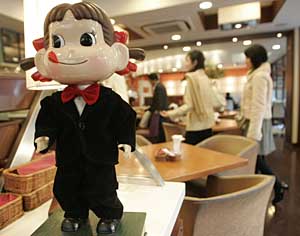 | 早在今年1月份,日本糕點業(yè)巨頭“不二家”株式會社就曾公開承認曾出售使用過期原材料制作的糕點。圖為日本首都東京的一家餐廳里擺放著“不二家”的吉祥物“Peko-chan”。新華社/路透 | 當造假已成習慣