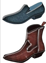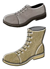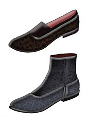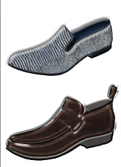 男鞋鞋型的更新途徑是通過(guò)對(duì)男鞋式樣的精心設(shè)計(jì)和對(duì)所用材料的明顯處理加工而完成的。與之前的幾季相比,2009/2010秋冬季男鞋流行趨勢(shì)并沒(méi)有完全脫離過(guò)去,來(lái)一次突破性的變革。但是,朝著更優(yōu)雅的方向發(fā)展已是顯而易見(jiàn)的了。男鞋款式更豐富而且裝飾性更強(qiáng)是本季不同于以往的一個(gè)明顯變化。 ELECTROPOP品牌男鞋通過(guò)科技革新完成了對(duì)流行文化的一次重新創(chuàng)造。超出足部本身尺寸的超大體積是20世紀(jì)80年代的典型特點(diǎn)。在用材方面,真皮與高科技織物成為鞋面材質(zhì)的主要選擇。使用加長(zhǎng)的、符合人體工學(xué)設(shè)計(jì)的真皮鞋底,當(dāng)然也有橡膠質(zhì)地的鞋底。在樣式上,工裝式的圓頭皮鞋,彎曲度靈活的膠底運(yùn)動(dòng)鞋,如跑步鞋或拳擊鞋等將大行其道。這些鞋在設(shè)計(jì)上同樣也用到了閃亮的材質(zhì)以體現(xiàn)其質(zhì)感。 CAFÈCHANTANT品牌男鞋充滿樂(lè)觀而有趣的情調(diào),是20世紀(jì)初期鞋型的審美取向。尺寸合腳而且鞋底鞋跟也是力求越小越低越好。鞋的用料非常豐富,同時(shí)兼顧到時(shí)尚與現(xiàn)代感,光滑、無(wú)雜質(zhì)的真皮與小牛皮的運(yùn)用與表面設(shè)計(jì)有復(fù)雜紋理的鞋面形成鮮明對(duì)比。頻繁的應(yīng)用立體與印花圖案也是其特點(diǎn)之一。式樣有些是錐形設(shè)計(jì),而有的便鞋則借鑒了一些優(yōu)雅設(shè)計(jì)風(fēng)格。有些是圓頭的,有些是馬鞍形的鞋頭,還有一些是寬頭鞋。值得一提的是,這些鞋都非常柔軟,那種裹腿的騎馬靴也不例外。