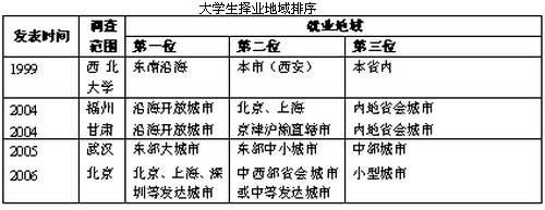 大學(xué)生對(duì)就業(yè)的地域十分看重,到北京、去上海,下廣州深圳成為大多數(shù)大學(xué)生的首選,不但人才短缺的西部無(wú)人問(wèn)津,就連中部的大中城市也很少進(jìn)入大學(xué)生的第一視野。