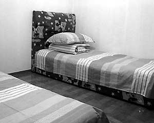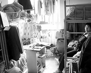 筆者自稱是準(zhǔn)備求職的學(xué)生,來(lái)到位于中潭路中遠(yuǎn)兩灣城的“易安居”求職公寓。筆者發(fā)現(xiàn),這個(gè)樓盤入住率低,一樓大廳沒有保安,也沒有安裝對(duì)講機(jī)和防盜門,可以自由出入。一名工作人員帶筆者參觀位于20樓的一處“雙人房”,約十平方米的小房間里只有兩個(gè)床墊、兩個(gè)小柜子和一臺(tái)小電視機(jī)。工作人員介紹,這間房每月租金700元錢。 隨后,工作人員又帶筆者到22樓看一間更便宜的房間,三室一廳的套房共有10張雙人床,每張床上都堆滿被子和雜物。房間是水泥地面,廁所里簡(jiǎn)單裝了個(gè)淋浴頭,客廳里晾著兩排衣服。這里的床位每月360元,按天數(shù)算,則是15元一天。 兩套“求職公寓”里都沒懸掛營(yíng)業(yè)執(zhí)照等證件。筆者問(wèn)及經(jīng)營(yíng)資質(zhì),工作人員立即回答:“這和入住沒關(guān)系,你沒必要知道。”據(jù)悉,這家求職公寓有自己的網(wǎng)站,此外還在一些學(xué)生網(wǎng)上發(fā)帖子和做廣告。整個(gè)暗訪過(guò)程中,工作人員沒有要求筆者出示學(xué)生證。 事后,筆者登錄“易安居”求職公寓網(wǎng)站,網(wǎng)頁(yè)上的“學(xué)生公寓實(shí)景圖”和實(shí)際情況大相徑庭。而筆者在一些房屋中介處了解到,同一地段15平方米左右的單間月租費(fèi)為700元左右,價(jià)格不高于“求職公寓”。
