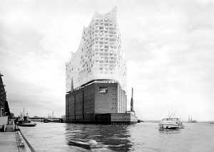 近了,越來(lái)越近了。我們乘坐的小船漸漸靠近碼頭。遠(yuǎn)遠(yuǎn)望去,紅褐色的外墻絲毫感受不到這座建筑的特殊,但手中新聞冊(cè)上的設(shè)計(jì)效果圖(見(jiàn)左圖)卻讓人陷入了無(wú)盡的遐想之中。 世人眼中,德國(guó)漢堡是一座港口城市。但如今,漢堡人要改變世人對(duì)它的印象。在易北河畔,漢堡人將建起一座宏偉的音樂(lè)廳——易北愛(ài)樂(lè)廳,它將躋身于世界十大音樂(lè)廳之列,給酷愛(ài)音樂(lè)的德國(guó)人再添一座如同柏林愛(ài)樂(lè)廳那樣的藝術(shù)殿堂。 “易北愛(ài)樂(lè)廳”