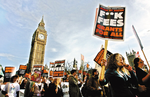 2006年10月29日,倫敦學(xué)生舉行了反對(duì)學(xué)費(fèi)升高的游行活動(dòng)。資料圖片 | 附加學(xué)費(fèi)制為主因