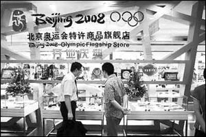 奧運(yùn)會(huì)期間,北京奧組委計(jì)劃在所有競(jìng)賽和非競(jìng)賽場(chǎng)館開(kāi)設(shè)奧運(yùn)商品專賣店,以保證來(lái)自世界各地的運(yùn)動(dòng)員和游客能夠方便地購(gòu)買特許商品。此外,在奧林匹克公園還將開(kāi)設(shè)一家面積3000平方米的北京2008超級(jí)商店。