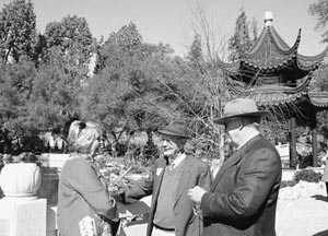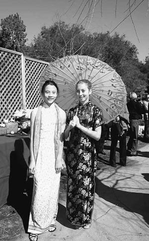 | 身著中式服裝的當(dāng)?shù)厣倥趫@中留影。管克江/攝 | 本報(bào)洛杉磯2月24日電 23日,美國加利福尼亞州久負(fù)盛名的亨廷頓圖書館內(nèi)流芳溢彩,紅燈高懸。隨著鑼鼓聲動(dòng),祥獅起舞,加州第一座、也是目前美國最大的中國古典式園林“流芳園”正式開門迎客。