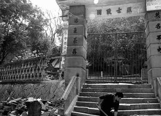 浩氣長(zhǎng)存”的對(duì)聯(lián)。有人正在清理堵在門(mén)前的沙石和木頭。鐵門(mén)少了一根鋼條,圍墻破了一個(gè)大窟窿,人可以輕易進(jìn)出(見(jiàn)圖①,余榮華攝)。 進(jìn)入陵園,“革命烈士永垂不朽”的紀(jì)念碑高高矗立,可碑前護(hù)欄卻破碎不堪,躺倒在地,周圍散落著碎石和枯葉(見(jiàn)圖②,余榮華攝)。附近居民說(shuō),經(jīng)常有些不懂事的孩子跑進(jìn)陵園玩耍,亂扔垃圾,甚至在墓碑旁玩火、放鞭炮。 葉必良的兒子葉金進(jìn)說(shuō),1988年陵園再次整修后,鎮(zhèn)、村會(huì)在清明節(jié)來(lái)祭掃,但陵園的日常打掃和維護(hù)主要是他們一家人負(fù)責(zé),陵園大門(mén)鑰匙也一直在他們手上,“但是也不可能天天來(lái)打掃”。 2005年底,“龍王”臺(tái)風(fēng)登陸福建,陵園地基和圍墻等遭到損壞,葉金進(jìn)曾向村、鎮(zhèn)、區(qū)三級(jí)遞交報(bào)告,希望能盡快對(duì)陵園進(jìn)行修繕。 “光靠我們家庭的力量,要修繕陵園很困難。”他說(shuō),“可事情一直拖著,門(mén)壞了,圍墻破了,如今連保證陵園的日常清潔都有些困難”。