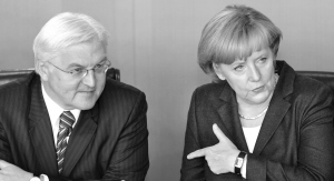 | 歐洲各主要經(jīng)濟(jì)體昨日紛紛出臺大力度救助措施。圖為德國總理默克爾和外長施泰因邁爾(左)發(fā)表講話,德國政府最新公布了總金額高達(dá)4700億歐元的金融救援計(jì)劃。IC圖片 | 在歐元區(qū)15國領(lǐng)導(dǎo)人上周日通過金融救助行動計(jì)劃后,歐洲各主要經(jīng)濟(jì)體昨日紛紛出臺相應(yīng)的大力度救助措施。與此同時,美聯(lián)儲13日聯(lián)合歐洲和日本等五大央行再次加大“輸血”力度,向市場推行“無限額”注資計(jì)劃。業(yè)內(nèi)人士認(rèn)為,金融救市措施將維護(hù)金融市場穩(wěn)定,但大宗商品市場短時間內(nèi)難以扭轉(zhuǎn)下滑趨勢。