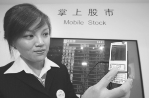 | 11月8日,中國聯(lián)通展示了基于WCDMA網(wǎng)絡(luò)的3G手機炒股服務(wù)。CFP圖片 | 昨日(11月18日),受3G牌照即將發(fā)放的消息刺激,A股市場中包括中國電信和中興通訊在內(nèi)的大多數(shù)電信股悉數(shù)漲停。申萬信息設(shè)備行業(yè)指數(shù)漲幅達到8.46%,位居首位。 業(yè)內(nèi)人士認為,向運營商發(fā)放3G牌照的各項條件已經(jīng)具備,而三大運營商3G網(wǎng)絡(luò)建設(shè)三年預(yù)計將有超過2000億元的投資,這將對通信設(shè)備商及部分手機制造商形成利好。