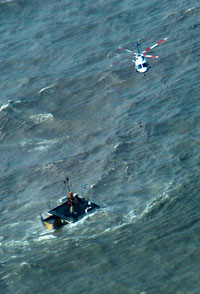 11時(shí)03分,從東營(yíng)機(jī)場(chǎng)起飛的直升機(jī)又一次回到了出事現(xiàn)場(chǎng),發(fā)現(xiàn)另外七名遇險(xiǎn)船員已陷入了更加危急的險(xiǎn)境。遇險(xiǎn)船船體已全部被海水淹沒,七名船員全部爬到遇險(xiǎn)船指揮樓頂部,緊緊抱住欄桿求生。此時(shí),機(jī)長(zhǎng)再次以精湛嫻熟的駕駛技術(shù)將直升機(jī)懸停在遇險(xiǎn)船上空,由救生員以最快的速度將他們?nèi)烤绕稹?/P> |