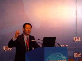 圖為中國證監(jiān)會主席助理姜洋在“財經(jīng)年會2007:預測與戰(zhàn)略”上發(fā)表講演。本報記者 張漢青 攝