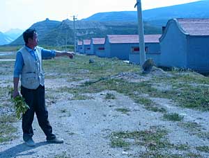新村共建有184套共484間房,還蓋有一座兩層樓作學(xué)校,以及10間村委會辦公室,基本可以滿足村民需要。然而,新村房子建成近一年多,至今空無一人,村民誰都不愿入住。 記者調(diào)查發(fā)現(xiàn),村民拒絕入住的最大原因是認(rèn)為新村的房子是“危房”!皦Φ念A(yù)制板不合格,”村民謝富說,“我一直在那兒打工,我親手放過預(yù)制板,因?yàn)閴Σ惶苷,預(yù)制板有的放得長,有的搭得短,24公分的墻每塊預(yù)制板只搭上去三公分,如果一有地震或下雨多,肯定會塌! 村民溫金說,蓋房子本來該用石頭打地基,這樣房子才結(jié)實(shí)?尚麓宓姆孔又皇窍峦谝幻,然后把沙子石頭扔到溝里,地基根本沒夯實(shí)!吧w房的磚不少是廢磚,一打就碎,這樣的房子誰敢。俊