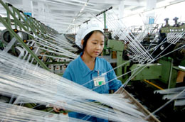 11月29日,工人在福建潯興拉鏈科技股份有限公司生產(chǎn)車間工作。 近年來,福建省晉江市充分發(fā)揮沿海區(qū)域優(yōu)勢,大力發(fā)展民營經(jīng)濟。晉江市現(xiàn)有一般納稅人資格企業(yè)11953家,個體工商戶12936家,形成了以紡織服裝、制鞋、陶瓷石材、食品、輕工玩具等五大傳統(tǒng)產(chǎn)業(yè)和車輛機械、精細化工、生物制藥、紙制品、新型材料業(yè)等五大新興產(chǎn)業(yè),2007年前三個季度,全市完成生產(chǎn)總值413.52億元,同比增長15.5%,財政總收入44.69億元,同比增長25.9%。新華社記者:張國俊
