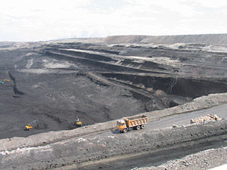 | 在新疆準東煤炭基地神華新疆分公司的巨大露天煤礦里,巨型挖掘機和運煤車形似螞蟻。新華社記者 劉兵